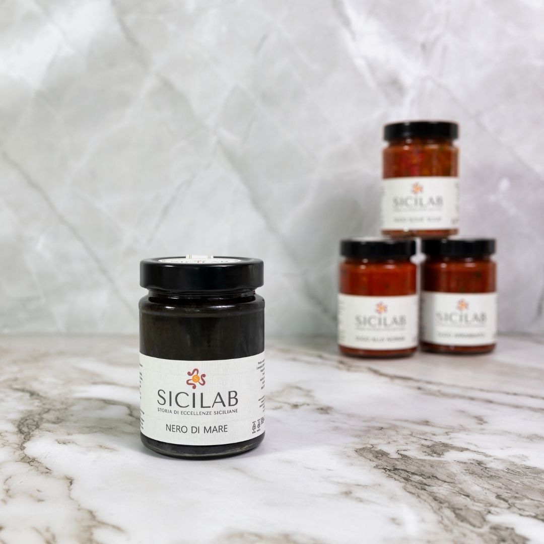 Il "Nero di Mare" è una salsa densa e saporita che celebra le profondità del Mediterraneo. Il suo ingrediente principale, il nero di seppia, dona a questo condimento un colore profondo e un sapore ricco e leggermente salato. E' una danza tra il mare e la terra, dove l'umami del nero di seppia si fonde con aglio, cipolla e un pizzico di pepe. Questo sugo è una celebrazione dell'eredità marittima della Sicilia, e ogni cucchiaiata evoca le onde del mare che lambiscono le coste rocciose dell'isola.
