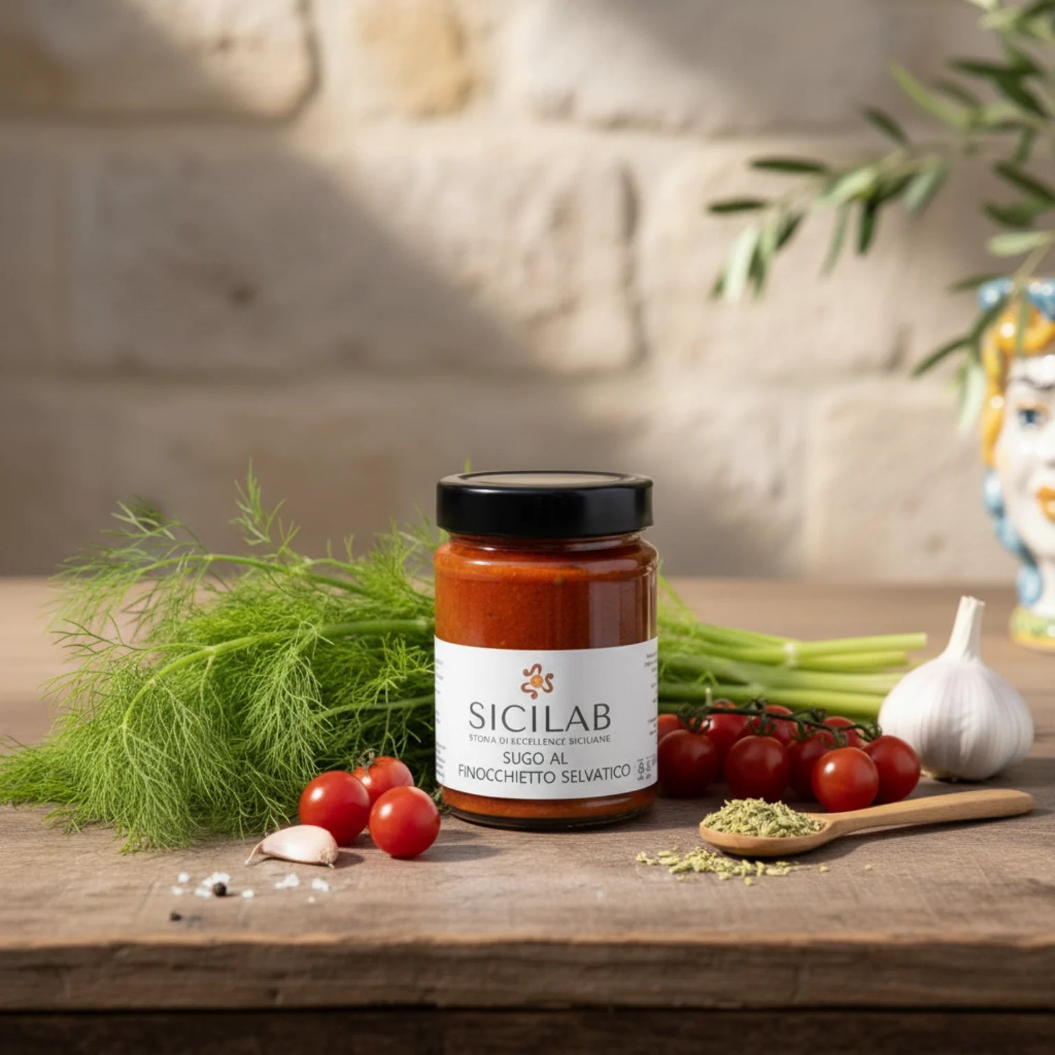 Polpa di Pomodoro Italiano, Finocchietto selvatico 4%, cipolla, olio extra vergine di oliva, sale marino integrale, zucchero.